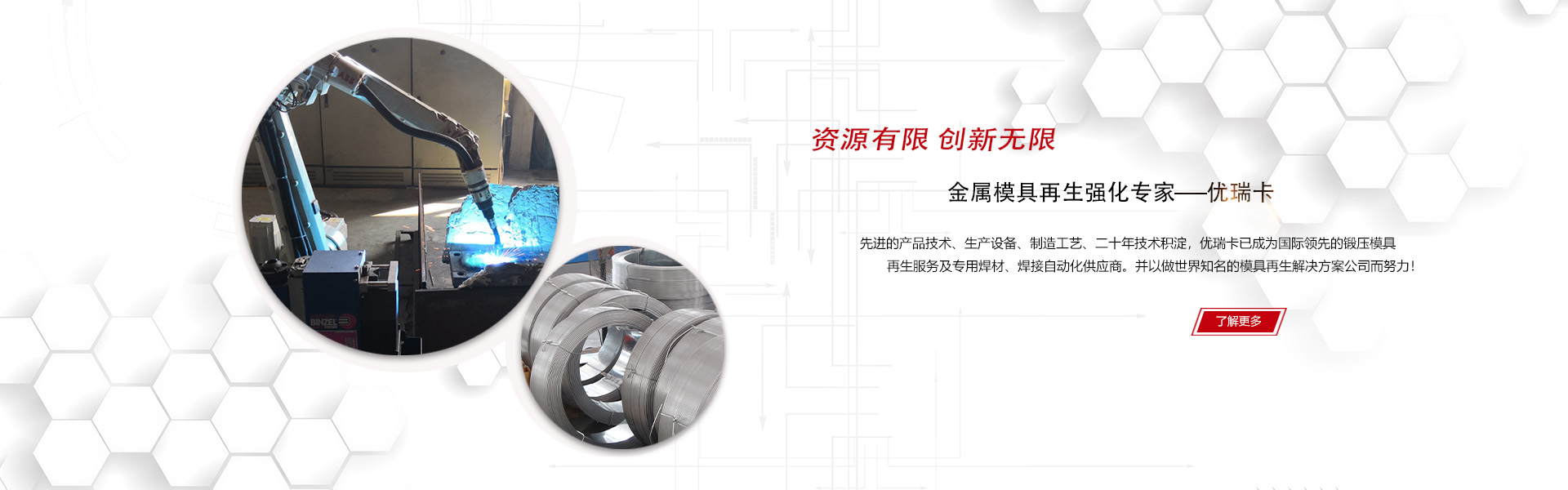 優瑞卡(大連)焊接技術有限公司是國際領先的鍛造模具再生服務及專用焊材、焊接自動化供應商,我們的產品涵蓋金屬模具焊接再生和延壽強化的各個環節